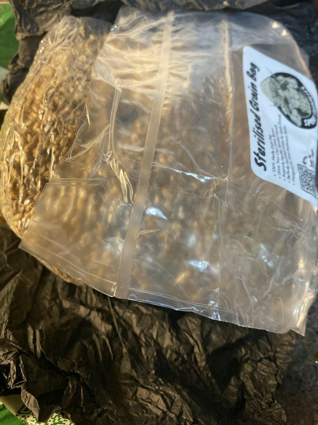To start growing mycelium with this rye bag: Using aseptic technique, wipe the injection port with the included 70% isopropyl wipe, then attach the needle to your chosen liquid culture/spore syringe and sterilise the tip of the needle (at your own risk). From there, insert your syringe into the injection port and inject around 10cc of liquid (depending on spores/culture). For more details check out our How to use your Sterilised Grain guide.